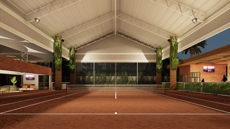 Idealizado pelos empresários Artur Bezerra e Marcelo Costa , o clube ocupará um espaço de 7 mil m² e contará com seis quadras de tênis 100% cobertas — sendo quatro com dimensões e recursos oficiais para competições — todas em saibro importado. A estrutura inclui ainda duas quadras de padel, vestiários climatizados, lojas, sala VIP, estacionamento com 25 vagas e restaurante com açaiteria, reforçando o conceito de experiência premium para associados.