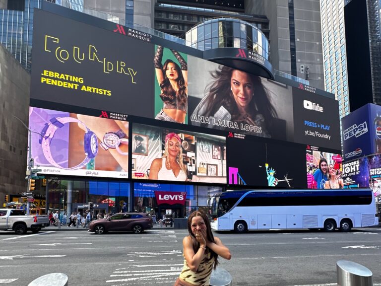 A oportunidade de ter um outdoor na Times Square surgiu após um convite inesperado do YouTube para uma reunião em São Paulo com a equipe global da plataforma. Durante a conversa, ela expressou sua gratidão pelo outdoor anterior na estação da Sé (São Paulo), uma iniciativa do programa Foundry, e em tom de brincadeira, mencionou o sonho de ter seu rosto estampado na Times Square. A resposta da equipe foi promissora, e em poucos dias, a artista recebeu a notícia de que teria não apenas um, mas dois outdoors: um na lendária Times Square, em Nova Iorque, e outro na também icônica Sunset Blvd, em Los Angeles. Esse passo a levou de volta aos Estados Unidos para a gravação de conteúdo.