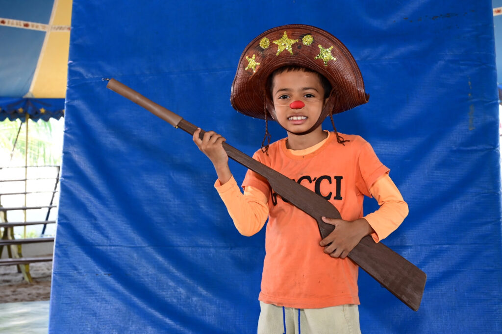 Outro destaque é o pequeno João Miguel, de 8 anos, que dá vida ao palhaço Pitchulinha. Ele começou no projeto aos cinco anos e hoje fala com orgulho da sua trajetória. “No começo eu não gostava muito, achava que circo era só palhaço. Aí descobri o trapézio, o swing, os saltos… e fiquei pra valer. Criei o Pitchulinha com ajuda do meu educador, escolhi o nome, as roupas e a peruca verde.”
