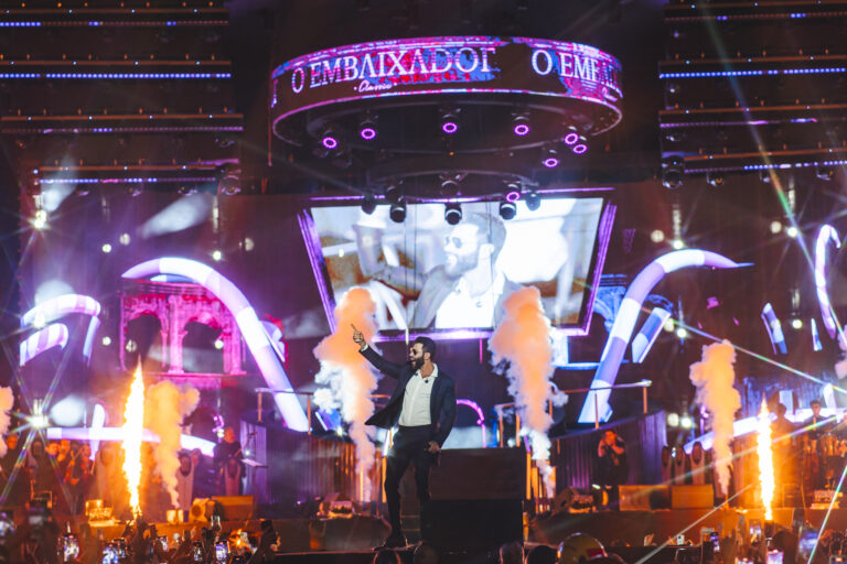Com um repertório que revisita músicas de diferentes fases da trajetória do cantor, o projeto trouxe um palco com estilo arquitetônico, com uma versão mais clássica do Embaixador. A estrutura montada contou com três setores, o setor Open Bar, Frontstage e área das suítes, proporcionando uma experiência aconchegante em todos os setores.